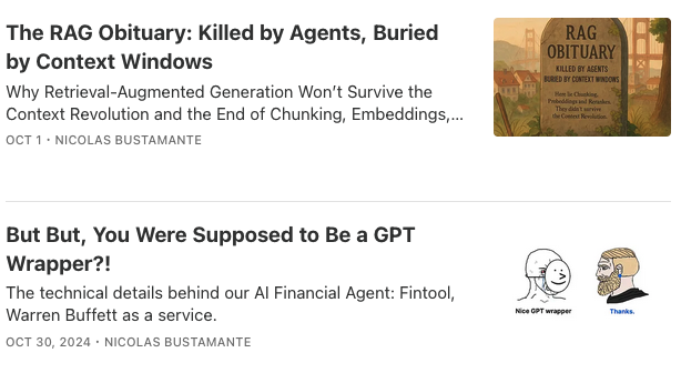 Oct. 2024 post goes into extended detail aobut how much work it is to build a RAG system, the competetive advantage in AI is not the LLM but being incredbly smart about what…